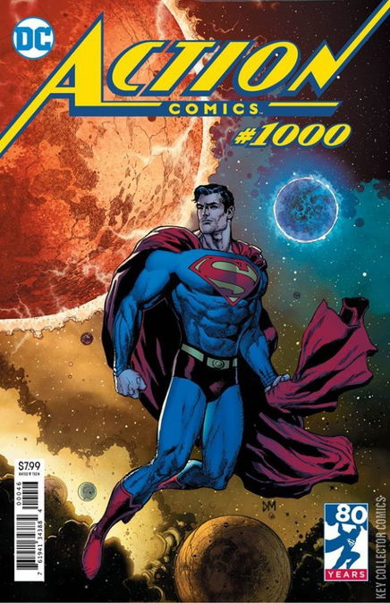 FROM THE CITY THAT HAS EVERYTHING / NEVER-ENDING BATTLE / AN ENEMY WITHIN / THE GAME / THE CAR / THE FIFTH SEASON / OF TOMORROW / FIVE MINUTES / ACTIONLAND! / FASTER THAN A SPEEDING BULLET / THE TRUTH Celebrate 1000 issues of Action Comics with an all-star lineup of top talent as they pay tribute to the comic that started it all! From today’s explosive action to a previously unpublished tale illustrated by the legendary Curt Swan to the Man of Tomorrow’s future—this very special, oversized issue presents the best of the best in Superman stories! FEATURING ALL-NEW ART AND STORIES BY: BRIAN MICHAEL BENDIS, JOHN CASSADAY, OLIVIER COIPEL, PAUL DINI, JOSE LUIS GARCIA-LOPEZ, PATRICK GLEASON, BUTCH GUICE, GEOFF JOHNS, DAN JURGENS, TOM KING, JIM LEE, CLAY MANN, BRAD MELTZER, JERRY ORDWAY, TIM SALE, LOUISE SIMONSON, SCOTT SNYDER, CURT SWAN, PETER J. TOMASI, MARV WOLFMAN...AND MORE! DECADES-SPANNING OPEN-TO-ORDER VARIANT COVERS BY: STEVE RUDE (1930s), MICHAEL CHO (1940s), DAVE GIBBONS (1950s), MICHAEL ALLRED (1960s), JIM STERANKO (1970s), JOSHUA MIDDLETON (1980s), DAN JURGENS (1990s), LEE BERMEJO (2000s)...PLUS A BLANK VARIANT COVER! 1st appearance of Rogol Zaar, a villain named after the doctor who saved Brian Michael Bendis's life after he contracted MRSA Cover art by Jim Lee Interior stories and art by various notable creators Includes a previously unpublished Curt Swan illustrated story "The Game" was originally published for Action Comics: 80 Years of Superman: The Deluxe Edition and is also contained in the digital edition of Action Comics #1000.