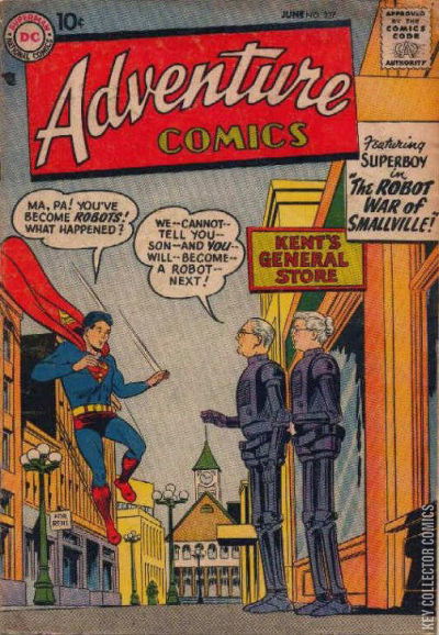 1. Superboy - The Robot War of Smallville (Superboy, Jonathan Kent, Martha Kent, Lana Lang, Professor Lang / written by Jerry Coleman, drawn by John Sikela) 2. Aquaman - The Secret of the Sea King (Aquaman / drawn by Ramona Fradon) 3. The Green Arrow - The Home-Made Arrows (Green Arrow, Speedy / drawn by George Papp)