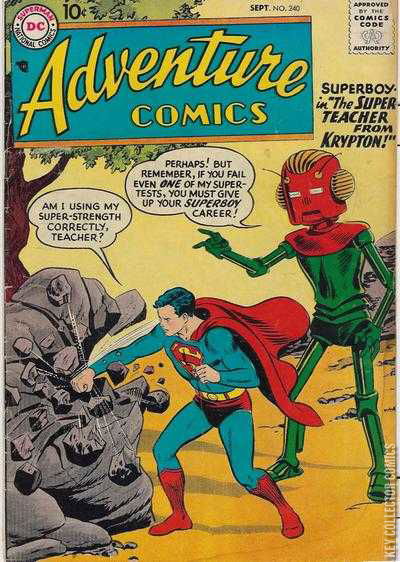 1. Superboy - The Super-Teacher from Krypton (Jor-El, Lara, Lana Lang, Martha Kent, Superboy / written by Edmond Hamilton, drawn by John Sikela) 2. The Green Arrow - Arrows -- For Hire (Green Arrow, Speedy / drawn by George Papp) 3. Aquaman - The Alphabet Book of the Sea (Aquaman / drawn by Ramona Fradon)