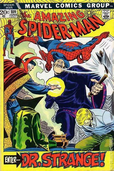 ENTER DR. STRANGE! Peter Parker is stuck by Gwen, unable to go after Flash Thompson's attackers as Spider-Man because Gwen would think Peter Parker is a coward. However, he gets an idea on how to slip away and makes it appear as though he's been kidnapped by Spider-Man. On his way to the Giant One and the Monks of the Light, Spider-Man is confronted by Dr. Strange's astral projection. He convinces Spider-Man to go to his Sanctum Sanctorum, and there he shows that Flash Thompson has been brought before the leader of the Monks and is slated for execution. Dr. Strange then pledges to help Spider-Man save his friend and the two depart to go and save Flash. Meanwhile, Flash is visited by Sha-Shan, the girl he befriended in the village. She tells Flash that after the bombing, the elder one (her father) was rendered into a coma-like state, and only by sacrificing Flash's life may they bring back their elder ruler. However, when Sha-Shan pulls out a knife, the others find her and pull her away. While at Harry Osborn's apartment, Gwen arrives and tells Harry that Peter has been "kidnapped" by Spider-Man. When Aunt May enters the room, Gwen lashes out at her when she calls Peter a boy, but she quickly apologizes for her outburst and the two make peace. Back at the hideout of the Monks, they prepare to execute Flash Thompson when Spider-Man and Dr. Strange burst in the room. As Spider-Man holds off the Giant One and his men, Dr. Strange casts a spell that brings the elder out of his trance. With the elder restored to normal, the followers cease their fighting and the elder absolves Flash of any wrong doing. After Dr. Strange departs, Flash tells Spider-Man that the whole story will be great to tell Gwen Stacy. Spider-Man departs and wonders how Peter Parker is going to be able to compete with Flash Thompson's feelings for Gwen now that he's a civilian again.