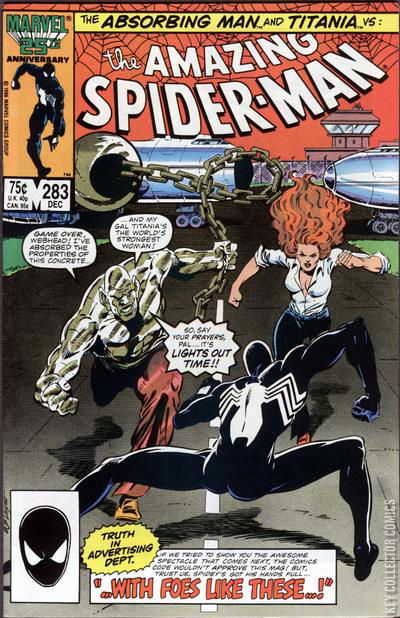 WITH FOES LIKE THESE... While looking for Flash Thompson, Spidey runs into villainess Titania mid heist. And she’s called in backup from her fiancé, Carl “The Crusher” Creel! How will Spider-Man defeat Titania and Absorbing Man when civilian life’s at risk? Time to call in the Avengers!