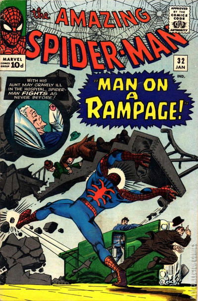 MAN ON A RAMPAGE! The Master Planner, who has been running experiments and stealing radioactive material, is actually Doctor Octopus. Meanwhile, Peter Parker is delivering new photos for The Daily Bugle when he’s spotted by Betty Brant. Peter is conflicted by the fact that she loves him but hates Spider-Man and he decides the best thing is to make her angry so she forgets about him. Ned Leeds tries to reason with Peter, but he shoves Ned aside and to not burden Betty with his secret. After this, Peter goes to the hospital where he learns Aunt May is dying because of radioactive material in her blood. He figures that she may have received this from him during a blood transfusion. Feeling responsible for not only Uncle Ben’s death but now perhaps Aunt May’s, he’s determined to save her. He realizes Curt Connors may be able to help and he swipes a vial of her blood and brings it to him for help. Pete raises money to get a serum called ISO-36 which may save Aunt May. As they prepare for its arrival, Dr. Connors is told that it’s been stolen and Spider-Man goes to track it down. Spider-Man tears up countless henchmen hideouts, throwing cars like toys, and finally, finds a trap door in an alley. He follows the Master Planner’s henchmen to an area where the ISO-36 serum sits unguarded. As he’s shocked off of the ceiling with electricity, he begins a fight with Doctor Octopus who is frightened by the intensity and strength Spider-Man now shows. As he hurls a rock at Doctor Octopus, he destroys a support beam and the entire lab comes crashing down. As he’s trapped underneath a huge and heavy iron unit weighing tons, drops of water come splashing on the canister of ISO-36, with the river slowly flooding the lab.