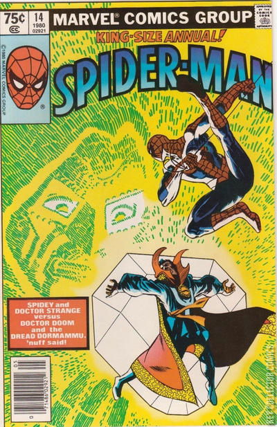 THE BOOK OF THE VISHANTI Castle Doom (Doomstadt) in Latveria: Dr. Doom has made a pact with the lord of the Dark Dimension, Dormammu to unleash a powerful mixture of science and magic called the Bend Sinister. However, knowing that whoever cast the spell to cause this fusion would ultimately perish, Doom sends his pawn Lucius Dilby to the Dark Dimension under the teachings of Dormammu to master the mystical might to cast the spell. Using his combined knowledge of magic and science, Lucius creates a creature that is a construct of both magic and technology. Knowing that Dr. Strange is the only one who could possibly pose a threat to their plan, Lucius sends the creature (disguised as a mummy) to be delivered to Dr. Strange's Sanctum Sanctorum. Not expecting a package, Strange uses his magical powers to open the container, and he and Wong are attacked by the magical robot. With Wong knocked out and Strange overpowered in his physical form, the Sorcerer Supreme tries to escape in his astral form. However, he finds a horde of spectral creatures waiting for him outside his Sanctum to stop him. Being dragged back into the Sanctum, Strange sends out a mystical call to help to any of New York's super-heroes who may be around to answer the call. With the Avengers and the Fantastic Four out of town, the sole hero around to answer the call is Spider-Man, who is currently conducting a class at Empire State University in his civilian guise of Peter Parker. When a chance chemical reaction causes the building to be evacuated, Peter uses this as leave to change into Spider-Man, canceling his midnight date with Debra Whitman to go see a show at a rock club. Arriving at Dr. Strange's Sanctum, Spider-Man is first attacked by stone gargoyles come to life, and later strange four-armed creatures. Escaping these creatures, Spider-Man scales the Sanctum to try and find an alternate way in and finds a huge hole blasted through all the building's floors and roof. Lowering himself inside, he finds Wong who has just revived. Not finding Dr. Strange, Spider-Man is told by Wong that the Doctor was able to send a message which meant nothing to him: the name of the club that Peter was to attend. Meanwhile, at his secret hideout within the famous punk rock venue, Lucious plots to use Dr. Strange as his sacrifice for casting the Bend Sinister at midnight. Spider-Man arrives at CBGB's and changes back into Peter Parker, walking amongst the crowd gone to listen to a band named Shrapnel, Peter is stopped by a girl who thinks she recognizes them. The Parker luck rings true when at that moment Debra spots Peter talking to this girl and figures he ditched her for someone else and she storms out. Peter chases after and tries to do damage control, running into Lucious on the way out, and takes Debra to dinner. However, when he spots the band members of Shrapnel leading a crowd chanting about the Bend Sinister he once more ditches Debra to change into Spider-Man. Following the crowd, he finds them chanting and dancing in front of the Latverian embassy, where Lucious appears on its roof with Dr. Strange, who is mystically bound to a giant gem that is central to the spell that is being cast. When Spider-Man tries to save Strange, he is attacked by the magical robot. During the fight, Peter realizes that the robot is unbeatable and is only there to make sure he doesn't interrupt the spell. Using his smarts, Spidey tricks the robot into flying into the gem, smashing it to bits and freeing Dr. Strange. Strange then unleashes his mystical fury on Lucious who erects a mystic shield and tries to flee. However, this doesn't save him from doom when a portal opens and a giant hand grabs him and pulls him into another dimension before disappearing. Strange thanks Spider-Man for his help and flees the scene without much explanation, leaving Spider-Man very exasperated. While back in Latervia, Dr. Doom has brought a small gem with a miniature Lucious trapped inside, he places it with a group of others and determines that using the Bend Sinister is too risky to use again. However, while this was a failure, Doom has other plans...