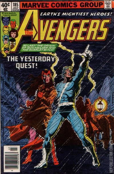 "The Yesterday Quest!" The story opens in the aftermath of the previous issue’s battle with the Absorbing Man. Iron-Man placates the arriving police by stating the Avengers will pay for damages. Captain America introduces Falcon to his new teammates. Disgruntled and embittered, Hawkeye sticks around just long enough to utter a few snippy remarks before storming off in a huff. Across the ocean, in East Transia, Wanda (the Scarlet Witch), Pietro (Quicksilver), and Django check into a hotel for the night. Pietro shares a room with Django across the hall from Wanda’s own. He advises her that she can call on him easily if there is any trouble. Wanda remarks that she feels completely safe as if she’s come home. Pietro has difficulty sleeping. Despite believing his parents to be the Whizzer and Miss America, he has hazy recollections of an earlier life lived among gypsies and of a pair of adults making him promise to always look after Wanda if something should happen to them. Despite his troubled mind, Pietro eventually drifts off to sleep. Very late at night, Wanda's sleep is disturbed by a mysterious visitor, Modred the Mystic. He offers to help her find the answers she seeks but only her alone as the path is dangerous for those without arcane abilities. Reluctantly, she agrees to go with him. Modred magically clothes her in her costume and they fly off into the night. They are seen flying away, however, by a wakeful young villager from her bedroom window. Modred takes Wanda to the precipice of Wundagore Mountain. She is startled to see the remains of the High Evolutionary’s citadel which have fallen into ruins since he departed the world. Yet still, there are defensive security devices that attack them. Although Modred receives a minor injury from one, Wanda disables it with a hex. They enter the ruins of the stronghold itself and see before them a floating book and altar. The book, Modred intones, belongs to his dark master. Then, Modred fells Wanda with a bolt of arcane energy before relating that the altar... is for Wanda! The mountain is silent except for the low rumble of laughter. The next morning, Pietro discovers Wanda missing. Alarmed, he races around the village searching for her but finds no clue. As he slumps to the ground in despair, a young girl (the eyewitness from the prior evening) tells him she saw Wanda fly up to the top of Wundagore last night. Pietro suddenly recalls that Django said there were lights in the sky over Wundagore on the night he and Wanda were born. He races up the side of the mountain so fast that he isn’t aware of someone watching him. He slams full-tilt into a force field barrier, gets knocked unconscious, and tumbles a good length of the way back down the side of it. Quicksilver awakens much later in a small mountain cottage way up the mountainside. He sees a matronly figure who is re-sewing his torn costume and addresses him by name. When he asks who she is and how she knows him, he sees her face for the first time. She is a humanoid bovine and she claims to have brought him into the world!