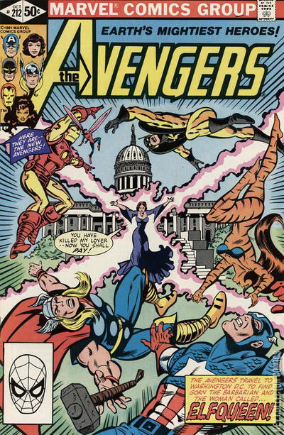 "Men of Deadly Pride!" Following the departure of several longtime Avengers (in the last issue), Jarvis finds himself waiting on only one resident at the mansion, the vivacious new member Tigra whom he finds to be a bit of a challenge for him. Aside from being allergic to cat-hair, Jarvis finds the flirtatious Tigra to be a jarring change from the usually more dignified former Avengers. Tigra gives the Avengers’ manservant a quick recap of her origin as the superheroine the Cat and her transformation into a feline being. In New Jersey, the Pyms are getting ready for the first new meeting since the roster shake-up. Hank is in a particularly surly mood and is curt and belligerent towards Jan, who does her best to placate him. As the new team assembles at the mansion, Yellowjacket’s angry attitude extends into the meeting. When Cap calls for an election to decide on a new leader, Iron-Man and Thor say they’d like him to be officially named group leader. Hank raises a fuss that he wasn’t consulted on the manner. Wasp is embarrassed and dismayed by her husband’s actions but says nothing. Meanwhile, in a secluded vale that is shielded from outsiders by a magical spell, two beings have dwelled in isolation for ten thousand years: Linnea, the enchanted Elfqueen, and her consort, the brutish warrior Gorn. Although Linnea prefers their simple secluded life, Gorn is weary and restless for new adventures. He demands that they leave the vale and explore the world outside them. As it turns out, the pair live in Virginia on the outskirts of Washington D.C. Gorn is perplexed by the outside world but refuses Linnea’s pleas that they return to their vale. When Gorn strikes Linnea in anger, she abruptly abandons him. Gorn is repentant but left alone. Unable to comprehend modern life on his own, he gets into a scuffle with a street gang and is then shot and killed by a police officer. When Gorn dies, Linnea returns to wreak havoc on the city. The Avengers are alerted to the situation and are about to depart in a quinjet. Yellowjacket has an issue with his stingers, for which the Wasp offers her assistance. Hank tears into Jan right in front of the rest of the team, accusing her of throwing her money around and condescending to him. Jan runs off in tears. Yellowjacket tells the team to forget her and stomps into the quinjet. His team-mates hesitantly follow him. In D.C., Linnea proves to be powerful enough to take on the entire team by herself. Yellowjacket is still being plagued with technical issues and can’t fire his stingers. At a critical junction, Captain America manages to overcome their language barrier and calm the Elfqueen down in order to talk to her. Yellowjacket has managed to fix his stingers and shoots a bolt into Linnea’s back. She resumes attacking the Avengers, throwing a car at him. His stingers fritz out again and he is helpless to stop the attack, but the Wasp (who has flown to D.C. on her own volition) manages to destroy it with a sting just in the nick of time to save him. Cap realizes the Elfqueen is not truly evil and gets the team to back off. Linnea ceases her attacks, gathering up Gorn’s dead body and departing peacefully. As the story ends, the Avengers are left discussing their encounter while Yellowjacket stands off on his own, sulking bitterly.