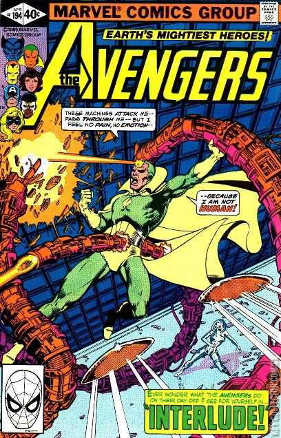 "Interlude" Wonder Man undergoes a retinal eye scan to confirm his identity and is officially reinstated on the Avengers roster. When Wasp asks about his acting career, he confesses that his latest play was a flop. The Beast remarks that Simon likely has a hard time getting jobs with his “distinctive” non-focused eyes. But Wonder Man demonstrates that he can, through intense concentration, temporarily assume a normal-looking eye pattern. He also hints at a new ongoing acting gig, though claims it is a secret that he can’t discuss. During the conversation, the Vision remains pensive and silent, merely staring out the window at the snowfall. With Wonder Man’s return, the Falcon decides it is time for him to resign, much to Cap’s surprise. Falcon confesses he has never felt comfortable being an Avenger and would prefer to go back to aiding people with common crime problems. He says his farewells to the team and leaves. Meanwhile, an anxious man hurries toward Avengers mansion. Beneath his trenchcoat, he is wearing a hospital gown labeled “Solomon Institute for the Criminally Insane.” Ms. Marvel finds Captain America outside in the winter storm, reflecting on Falcon’s departure and the reasons why he (and the rest of the team) chose to remain Avengers. As Cap waxes philosophically, two young kids sneak a peek at them over the wall around the outer grounds. One kid lobs a snowball at Cap, which he easily deflects without pausing in his soliloquy. The boy becomes frightened and runs away. Ms. Marvel is very amused. Inside the mansion, Iron-Man has removed his armor in his private quarters and walks around as Tony Stark. He walks in on Jocasta and Ms. Marvel having a conversation and begins flirting with Ms. Marvel - who forgets all about Jocasta. The robotic guest of the Avengers wanders away, baffled by the concept of “small talk”. She finds much about human behavior mystifying and feels incapable of forging close bonds with them. Jocasta makes her way to the workout area in the lower floors, where she finds the Vision brooding. She attempts to reach out to him, but he is in a rage and demolishes training equipment. Meanwhile, the mystery man has made his way to the mansion’s front door. The Wasp answers it and he collapses in her arms. She and Jarvis hurry him to the medical lab. In the rec room, the Beast and Wonder Man are playing ping-pong when Hank takes a break to watch television. Simon becomes distressed when Hank begins watching a goofy kid’s show, the Uncle Elmer Show. Suddenly, it’s revealed that Simon’s “top secret acting gig” is on the show, as a strong man named Mr. Muscles. He gets a pie in the face. The team convenes in the main meeting room to discuss the man. Terribly frightened, he relates his name is Selbe and begs for their help, convinced that people are trying to kill him. There is a tense argument, as Wasp believes the man but Ms. Marvel dismisses him as a mental case. However, when officials arrive claiming he has escaped from the Solomon Institute for the Criminally Insane, the heroes have no choice but to turn him over. The Avengers convene their weekly meeting when they realize that the Wasp is missing. Realizing that she must have followed Selbe back to the institute, they prepare to follow her.