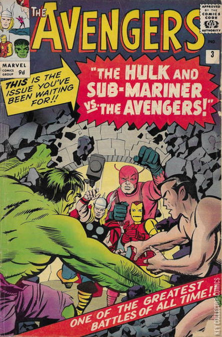 THE AVENGERS MEET 'SUB-MARINER!' At their next meeting, the Avengers decide they need to find the Hulk before he causes more trouble. Iron Man uses his image projector device to communicate with the Fantastic Four, Spider-Man, and the X-Men to ask if they have spotted him, but he has no luck. Thor comes up with the smart idea of asking Rick Jones to help find the Hulk. They contact him and Rick sets out into the desert to an area where he could be. A short while later, Rick discovers the Hulk and leads him to a cave they had used in the past as a refuge. There, Rick operates a machine that transforms the Hulk back into Bruce Banner. While asleep, stressful thoughts cause Banner to revert to his Hulk-state and escape. Rick Jones contacts the Avengers, alerting them to the situation and they travel to the desert to stop him getting out of hand. After a brief battle, the Hulk escapes onto a passing train and with the help of an empty train carriage, some industrial cable, and a couple of bags of flour, manages to elude the team. After laying low, he reaches the sea and is eventually taken onto a ship on the brink of exhaustion. Under the sea, Namor the Sub-Mariner watches the scene. After the Hulk leaves the ship, the Sub-Mariner meets him on a small island. After a short fight, Namor suggests they team up and fight the humans together, as they each bear a grudge against humanity. They form an uneasy alliance, each suspicious of the other, and issue a challenge to the Avengers: to battle at the Rock of Gibraltar! The villains use old World War II weaponry to attack the Avengers, but Iron Man deflects the shells with his repulsor rays. Namor disables Iron Man by firing an emery dust pellet at him, clogging up the joints in his armor. Thor holds the duo at bay while the Wasp finds a tank of oxygen, which is used to blow the dust away and bring Iron Man back into the fight. The Avengers chase their enemies through the tunnels. Namor plans to use an old air raid siren he has converted into a weapon, but is caught by Giant-Man and the battle continues. Both the Hulk and Sub-Mariner attempt to lift Thor's hammer but are unable to do so. At an inopportune moment, the stress causes Hulk to change back into Banner when Namor needs his help the most, and is forced to flee. Namor, without help from the Hulk, is quickly outmatched and narrowly escapes into the ocean.