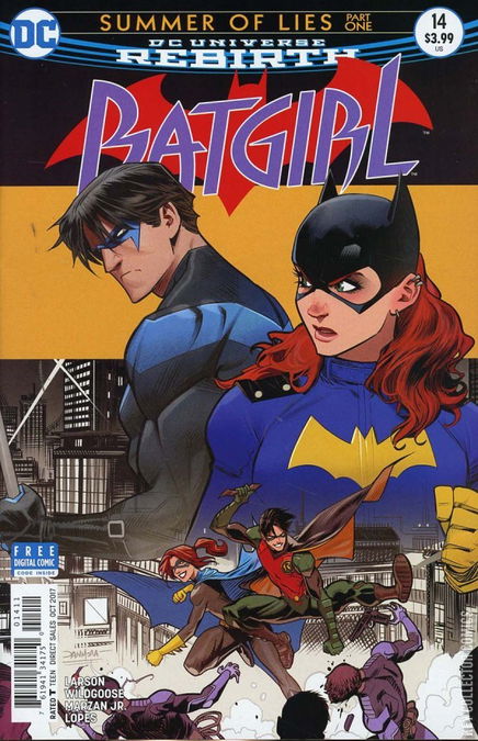 SUMMER OF LIES PART ONE Batgirl and Nightwing have gotten a odd message text summoning them up on a specific rooftop -"the source of all the mischief"- at night. When both heroes get to the rooftop, they are ambushed by a pair of costumed villains. Those villains have no chance against Batgirl and Dick, but they don't intend to win but send a message. After declaring "her" blood is on their hands and they'll be punished, both girls leap off the roof. As an ambulance is taking the bodies away, Babs and Dick note those girls were suspiciously familiar. They looked like Barbara's old friend Ainsley. But Barbara doesn't believe Ainsley is behind that incident. Barbara and Dick suspect Mad Hatter, who knew what happened, is still holding a grudge. Barbara has a flashback. Several years ago, when she was a newcomer in both Gotham and Gotham County High School, she befriended a substitute teacher and computer geek. Later Barbara has already created the "Batgirl" identity, but she's still the school pariah and doesn't get along well with Robin. Back in the present day, Batgirl and Nightwing search for Mad Hatter. Breaking into one of his hideouts and checking his files they find photos of both girls, nicknamed "Beanie" and "Beret". Batgirl blames Mad Hatter for their deaths, but Nightwing reminds her that being teenagers doesn't mean they were innocent. Kids do bad things, too. They did something bad back then, even though he and Barbara were trying to do the right thing. Further checking reveals Mad Hatter is in the hospital. Batgirl and Nightwing head out, and Barbara has another flashback. Barbara took a summer job as a waitress in "The Olive Garden". It was by coincidence her ex-substitute teacher, Ainsley, was already working there, but Ainsley befriended Barbara again. Ainsley was also working on a software project and needed an assistant. Barbara agreed to help her out. Later Barbara gets in an argument with her father and gets grounded. She goes to her room, puts on her Batgirl costume and sneaks out of her bedroom. She is found by Robin, and after a bit of heart-to-heart talk, he mentions he is going to a stakeout because he's got a lead on a case involving drugs and her school's cheerleaders. Barbara is happy to go with him. Present day. Batgirl and Nightwing meet Mad Hatter. Someone has beaten him within an inch of his life, but he manages to babble the "Red Queen" did this and is coming for Batgirl, too.