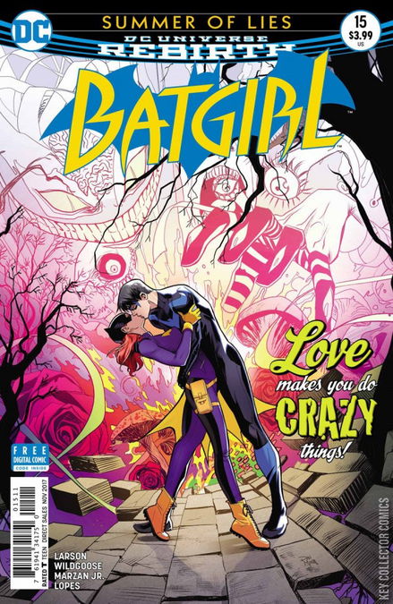 SUMMER OF LIES PART 2 In Gotham General Hospital, Batgirl and Nightwing interrogate Mad Hatter. He has been brutalized by someone called "the Red Queen". Neither Babs nor Dick have heard of her before. A riot suddenly breaks out, drawing their attention. A red-dressed nurse named Carly has gone mad and is beating her co-workers and tossing furniture around as calling herself "Red Knight". Batgirl quickly gleans she is being mind-controlled by the Red Queen. Babs and Dick shove her in a closet but can't stop her from hurting herself. Dick suggests that a MRI machine might sedate her. In the past, Batgirl and Robin snoop around a private party -after sharing their secret identities-, but in spite of their suspicions nobody seems to be doing drugs until a strange song sounds. Suddenly, all high-schoolers get high. One of them freaks out and dashes off. Batgirl and Robin take him to Gotham Hospital General. Mysteriously, no drugs are found in his body. In the present, both heroes tie Carly up and drag her to a MRI machine. Dick suspects someone wants to remind them what happened between them and the Mad Hatter the last time they faced him, ergo Carly is being controlled by nanobots. Batgirl and Robin lay Carly down on the machine and a nurse starts it up. However, something goes wrong: the machine gets out of control and won't let them turn it off until Carly is vaporized. Later Barbara has analyzed the "residue" left behind. Carly's body composition was 50 to 70 percent nanobots. Barbara didn't know it was possible. Dick blames himself but Barbara argues it's fault of whoever set them up. Batgirl forces herself to focus on the details of the case: Red Knight must be connected to Ainsley. The duo discovers Carly's maiden name was Philbert. Barbara knows that name. In the past, Barbara comes over Ainsley's place. The older girl is working on nano-robotics. Her client is using nanotechnology to produce the ability to see sounds as colors, but some kind of software bug causes hallucinations. Ainsley's cell rings and she talks with Dr. Philbert. Ainsley needs a prescription refilled, and Barbara offers to cover her shift as she goes to the doctor. Later three suspicious-looking men walk into Barbara's workplace. Ainsley runs off in order to not be seen by them. Barbara becomes suspicious and finds out their company's address. Later Batgirl and Dick stake the place out. Whoever those men are, they hate Ainsley.