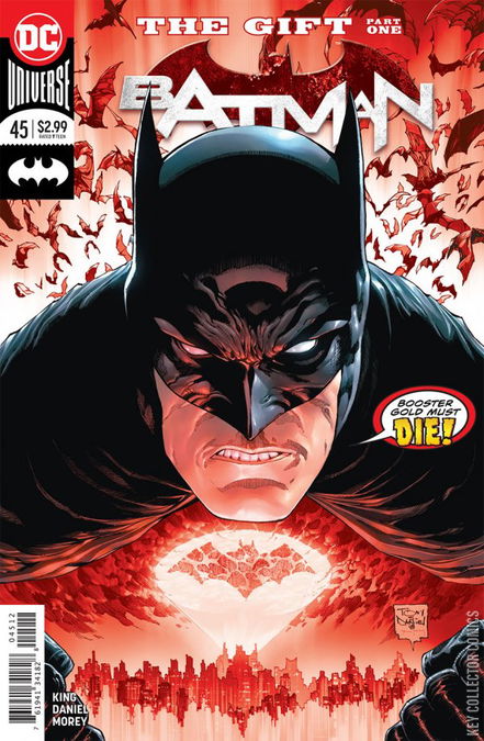 THE GIFT, PART 1 Booster Gold has come to Gotham City, and he's enlisting Batman and Catwoman to go on a time-traveling mission to rescue...Booster Gold! It seems a younger Booster Gold has gone back in time to kidnap an even younger version of himself, and to rescue his own past, Booster must pursue both of his previous incarnations through Batman's history to find out what is going on. The start of a new story that will sow the seeds for a whole new epic to come.
