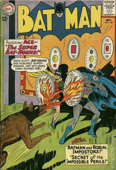 THE SECRET OF THE IMPOSSIBLE PERILS In order to help Matt Carter establish his credentials to become a member of Gotham's Explorer's Club, Bruce Wayne and Dick Grayson go with Matt's son Ted to retrace Matt's route to an unknown Golden City in South America. Following a map created by Matt, they encounter many of the objects on the map, but they all turn out to be far less extraordinary than expected. Finally, the three adventurers arrive at the location of the Golden City, only to find out that there is no gold there. Instead, it was perceived a city of gold, because of the reflected light of the sun off of bronze disc shrouding the city. Upon returning to Gotham, Ted, Batman and Robin give the evidence to the Explorer's Club and they grant admission to Matt Carter. BATMAN AND ROBIN – IMPOSTORS A couple of criminals have started to impersonate Batman and Robin in order to get the trust of the police officers and civilians as their accomplices perform crimes without any restriction. The real Dynamic Duo soon alert the people about the phony crime-fighters and the crooks become aware of their actions. They come up with the idea of using some of the original gadgets used by Batman, and for this purpose, they contact a criminal who managed to snatch away the Utility Belt from the Caped Crusader a few days ago. The man provides the crooks a faithful replica of the Utility Belt so they can avoid suspicion and continue impersonating the heroes. However, it is then revealed that the impostors are in fact the real Batman and Robin and that they created this hoax in order to get the man who had taken the Utility Belt, and prevent him from eventually discovering Bruce Wayne's fingerprints on the belt. ACE – THE SUPER BAT-HOUND Bat-Mite decides to have fun by giving Bat-Hound super-powers to help Batman and Robin fight crime. However, a strange occurrence causes the Dog Knight to turn against the Dynamic Duo and to help crooks escape instead. Fortunately, the strange behavior of the hound is gone after Bat-Mite removes the super-powers he had granted the dog. Once all is well again, Bat-Mite escapes to his own dimension before Batman can mete out discipline.