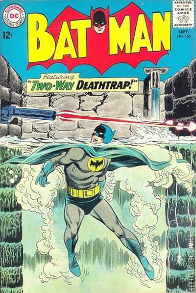 TWO-WAY DEATHTRAP! While searching for the Batcave, small time crook Mitch discovered an echo chamber that carried sound from the Batcave. Taking his friend Beany to the location, he reveals that one day he overheard Batman telling Robin about a recurring nightmare where he was caught in a trap he could not escape: A room filling with water that had an automatic machine gun firing near it's roof. Seeing this as an opportunity to eliminate Batman and make some easy money, Mitch and Beany go to Big Joe to place a bet, ten-to-one, that they could trap Batman in a trap he could not escape. Setting up the trap just as Batman disguised it, the two listened to find out when Batman would be patrolling an area near Beany's restaurant. That night Batman is tricked into trying to aid a "distressed" Beany, only to fall into their trap. When locked in the room, Batman waits for it to fill up with enough water for him to swim up and pull the automatic machine gun out of it's place and crawl through the hole freeing himself. He then bursts in on the crooks, who have turned on one another since Batman managed to escape, Batman then makes short work of them and turns them over to the police. Later that night in his civilian guise, he relates his story to Robin. A RENDEZVOUS WITH ROBBERY! Police officer Patricia Powell and her father have been invited to a party at Wayne Manor. Patricia has a secret crush on Bruce Wayne, unaware that she has actually fought crime with him in his costumed identity of Batman. Hoping to meet Bruce Wayne for the first time, this opportunity is foiled when the party is suddenly robbed when the caterers (led by a man in mask) pull out guns and demand everyone's valuables. The guests offer no resistance and the crooks get away. With the guests gone, Bruce Wayne and Dick Grayson change to their costumed identities of Batman and Robin to find the crooks. Investigating, they find that somebody posing as Bruce Wayne canceled the caterers and took their place. Tracing all the clues, Batman and Robin also find that Mike and Patricia Powell are also investigating the case. Tracking the crooks to an abandoned oil plant, the four crime fighters are attacked by the crooks, but eventually round them all up and turn them over to the police. The next day, Bruce Wayne comes to the police station to collect his stolen wallet, Patricia hoping this will finally be the chance to meet Bruce Wayne in person that she's been waiting for.