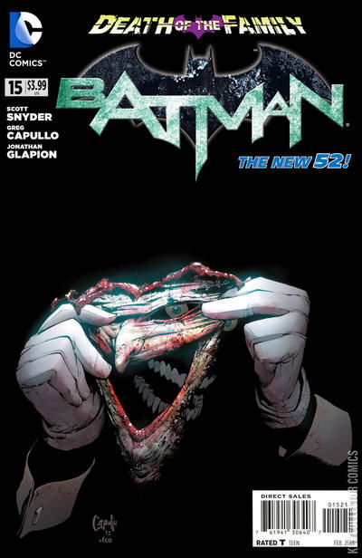 DEATH OF THE FAMILY, PART THREE: BUT HERE'S THE KICKER / RED LIGHT, GREEN LIGHT "DEATH OF THE FAMILY" continues here! The Joker's attacks have taken their toll on Batman and his allies, and now they have to face the impossible. The final madness of The Joker's plan revealed here! Why is he more dangerous now than ever before? Witness The Joker's confrontation with the Riddler as the horror of The Joker's plan is revealed.