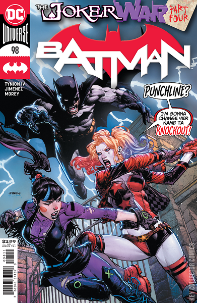 THE JOKER WAR, PART FOUR Batman is at his most vulnerable following a massive dose of an experimental new Joker toxin. With the Dark Knight haunted by demons and visions, it’s up to Harley Quinn to protect him while he recovers—because Punchline is on her way!