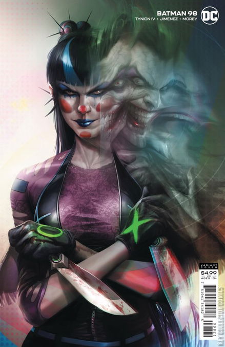THE JOKER WAR, PART FOUR Batman is at his most vulnerable following a massive dose of an experimental new Joker toxin. With the Dark Knight haunted by demons and visions, it’s up to Harley Quinn to protect him while he recovers—because Punchline is on her way!