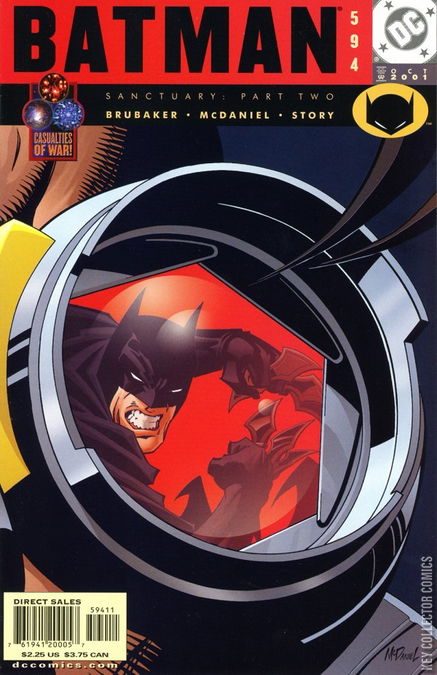 SANCTUARY PART 2 Zeiss finds someone who can repair his lenses, while the G.C.P.D. face off against the FBI over the alien which has been granted sanctuary by a Gotham cathedral. Batman leaves Batgirl to watch over the cathedral situation while he goes on patrol. Zeiss, meanwhile, receives his mended lenses from a courier called Pete, whom he kills, believing him to be a man who trades in information. Later in the night, Commissioner Akins calls Batman in because his men have been ordered to stand down at the cathedral: the FBI and/or DEO must be planning to act soon. At the cathedral, Batgirl stalls the DEO troops who are about to invade the premise. Batman tells the clergymen that they must tell him where their 'patient' is if they want to save him. Father Nick warns him that not only is the alien dying, but he doesn't seem to think in the same way that humans do. When Batman's hand meets that of the alien, their minds are link. He witnesses the destruction of the alien's homeworld at the hands of Imperiex and learns how to cure the two comatose men who attacked it earlier. As this is communicated, the alien drops dead. The next day, when Batman visits the hospital as Bruce Wayne to check up on the men, he bumps into Rex Cooke and Mallory Moxon along with Angelo Beretti. As they all leave the hospital, they are suddenly confronted by Zeiss who begs to be allowed back into the family.