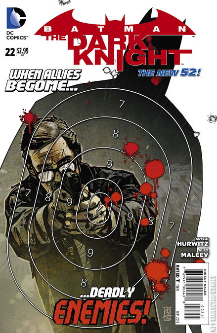 BREAKING POINT. Jim Gordon is nearing his breaking point. Gotham City has taken his marriage from him. It turned his son crazy, and killed him. It took away his daughter Barbara's ability to walk. Now, Clayface is back, and Jim isn't sure he wants to deal with it anymore. Tonight, a gang attempted to knock over a jewellery store, but a quick police response has lead to a hostage situation. Fed up, Jim offers the crooks a deal. If they allow the captured security guard to go free, he will offerhimself up as hostage in the man's place. Against Harvey Bullock's protests, Jim ensures that the security guard is safe, and then steps inside. Unseen by the thieves, though, he has two guns strapped to his back, which he quickly grabs and unloads into them all. When every one of them is dead or injured, Jim stands, spattered in their blood. From the shadows, Batman appears, and with disbelief, demands to know whether his friend really did what he just saw him do. Unexpectedly, the Commissioner begins firing at him. In their struggle, Batman soon discovers that this is not Jim Gordon at all, but Clayface. Confused, Batman wonders why Clayface would kill his own men. In response, the creature takes on the appearance of Natalya Trusevich, and begs Batman to know why he didn't save her in time. The transformation fazes Batman long enough that Clayface can escape. In the meantime, the GCPD bursts into the jewelry store to find the place empty of their Commissioner and every jewel in the place. Unseen, Batman knows that somewhere among these policemen, or nearby, Clayface is escaping; hiding in plain sight. Unfortunately, the whole ordeal poses a question: where is the real Jim Gordon? Now that Bruce has foiled Clayface's obvious attempt to frame the commissioner for excessive force and murder, Jim will be expendable, which makes it all the more important that Bruce find him. Satellite footage can find nothing on Clayface's last known whereabouts, and Bruce hopes that if he can find a way to pick the creature out of a crowd, he'll be able to safely imprison him within a perfectly sealed cage, of some kind. To add to their many questions, Alfred wonders just how Clayface knew about Natalya's relationship with Batman. That knowledge had been dangerous, as he noticed Bruce hesitate when he saw her face again. Bruce tries to shrug it off, but Alfred persists, warning that there are other kinds of strength than to create mental blocks against pain. Bruce grunts that he had tried to change, and now the woman he had changed for is dead. Alfred responds that Bruce change should have been for himself, not someone else. If Bruce intends to let all the loss he's experienced mean nothing, Alfred warns, he should continue to do nothing to change his life for the better. Meanwhile, Jim Gordon has been chained to a trap door in the floor of the stage of an abandoned theatre. Though it is a struggle, he promises himself he will not give up, and noticing a large spotlight near to him, he attempts to tug the cover from it, and form a Bat-Symbol from the old scraps of posters lying on the floor. Stretching hard, he tries to reach the plug to a nearby outlet. Soon, Batman spots the bright signal shining in the sky, and traces it back to the old theatre. Jim lies collapsed on the floor, and Batman cuts his legs free with a laser. Though he hopes to get Jim to safety, the Commissioner insists that they have a look around this safe house. The information they discover is not news to them: Basil Karlo is both a narcissist and a master of disguise, capable of becoming anyone, anywhere, and at any time. A crowd has gathered around the theatre, having seen the light of the signal, and Batman knows that Clayface is somewhere among them, but he and Jim escape unimpeded, even as Karlo watches.