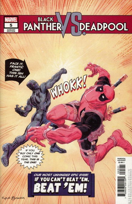 THE DRAMATIC CONCLUSION: EVERYONE DIES! Or at least one person will come very, very close to dying! Probably! It’s hard to tell with these team-up books! But one thing’s for sure: This is the end. And there’s a reason Wade Wilson is known as DEADpool. Will he obtain the Vibranium he needs to save Willie Lumpkin’s life? Will the Black Panther chase immortality to stop him? Will Wade’s teleporter ever work properly? Find out here!