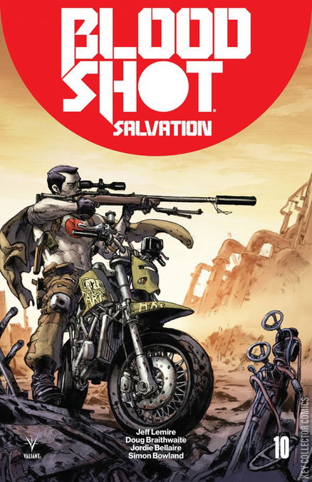 ALL-NEW ARC! ALL-NEW JUMPING-ON POINT! “THE BOOK OF REVELATIONS” – PART ONE! Two thousand years in the future – in the year 4001 A.D. – the man once known as Ray Garrison is no more…but the microscopic nanites inside him live on. Enter Bloodshot 4001 – a strange, gunslinging echo of Bloodshot’s mind, body, and soul that is now more machine than man. But when our century’s Bloodshot finds himself delivered to the dawn of the 41st century with one last mission to fulfill, two Valiant legends will finally come face to face…just as the secret revelation that binds them together across the ages will forever reshape Bloodshot’s place at the center of the Valiant Universe! From superstar writer Jeff Lemire ( The Terrifics, Black Hammer ) and artistic powerhouse Doug Braithwaite ( X-O MANOWAR , Journey into Mystery ), Valiant’s Eisner Award-nominated superhero saga goes back to the far, far future for the ultimate meeting of man and machine at the crossroads of tomorrow and today!