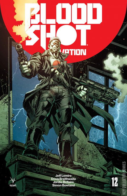 The long road to salvation ends here! Bloodshot has traveled from the depths of the Deadside to the far-flung future of 4002 A.D. to save his daughter’s life…and spare her the murderous inheritance of the nanites that flow through both their veins. Now, stranded at the crossroads of the 41st century with one last mission between them and freedom, the question will finally be answered: Was it all for naught? At long last, Eisner Award nominee Jeff Lemire’s staggering Bloodshot saga reaches a monumental climax as superstar artist Doug Braithwaite (X-O MANOWAR) helps close “THE BOOK OF REVELATIONS” once and for all!