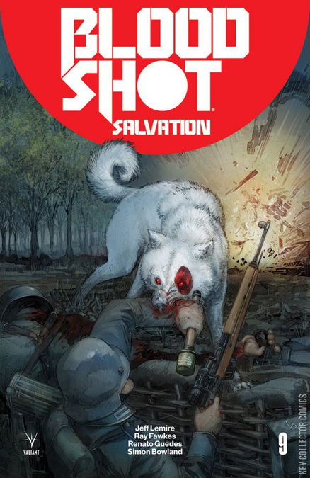 The origin of Bloodhound! In the wire-strewn trenches of World War I, witness the true story of a good boy gone bad, as Eisner and Harvey Award nominee Ray Fawkes (Batman: Eternal) joins New York Times best-selling writer Jeff Lemire (Black Hammer) and astonishing artist Renato Guedes (X-O MANOWAR) for a special one-shot tale chronicling the never-before-revealed history of Project Rising Spirit’s first prototype in nanite enhancement: the indestructible canine weapons unit codenamed Bloodhound! Before he found his place at Ray Garrison’s side, Bloodshot’s loyal companion learned the depths of mankind’s inhumanity toward brother and beast alike on the battlefields of France. Now, as the Kaiser’s war machine approaches, find out firsthand how a beloved comrade with four legs and a soul full of fury inspired a legacy that still stands after nearly a century!