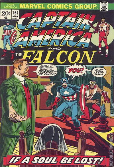 "... If he Loseth His Soul!" - Upset over the split with his partner, the Falcon, Captain America heads home to find that she's gone as well, with only a vague note not to come looking for her. Naturally, Cap ignores the written request, fearing that there might be something more going here on than there seems. After Cap reunites with Falcon, at least on a trial basis, the two heroes track Sharon to a mental hospital in Connecticut where they are immediately attacked and captured by the men of Dr. Faustus!
