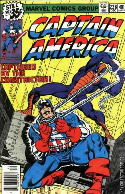 "A Serpent Lurks Below" Captain America broods at Avengers Mansion until Iron Man gives him a pep talk; After saving a boy from being hit by a truck, Cap goes to SHIELD's New York HQ to look for the missing Falcon; He defeats a SHIELD robot and finds the base deserted. Jasper Sitwell radios in and tells Cap that SHIELD has abandoned the base for security reasons and that it's due for destruction in fifteen minutes; Sitwell connects Cap with the SHIELD Super-Agents in Los Angeles, who report that Falcon's been missing for days; Blue Streak explains that Falcon is looking for someone in trouble named Jim; Constrictor, a costumed assassin working for the Corporation, ambushes Cap and reveals the SHIELD Super-Agents have a Corporation mole in their ranks.