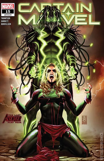 THE LAST AVENGER, PART FOUR: DESPERATE MEASURES Captain Marvel had 24 hours to kill five Avengers—and she's dangerously close to failing. Carol's plan was always flawed, but as she nears the endgame, those flaws are becoming fatal. As Vox Supreme's true plans for five dead Avengers emerge, it's more important than ever that Carol not fail today. LEGACY #149