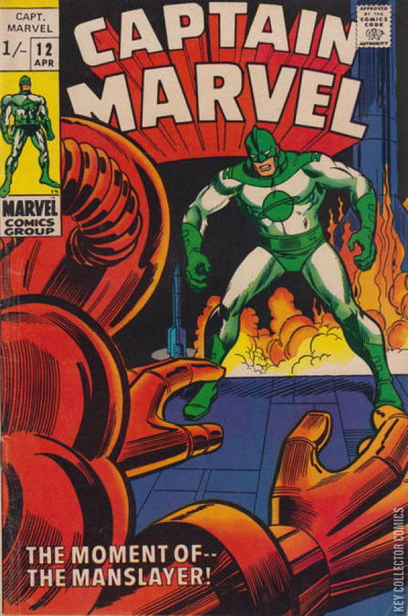 The Moment of the ManslayerThe issue begins with Mar-Vell receiving an insurmountable amount of new powers from the being named ZO. In exchange for his new abilities, Mar-Vell has agreed to serve ZO once he has gained his revenge on Yon-Rogg. Mar-Vell streaks through space to track down the starship Helion on which Yon-Rogg is based. However he first takes a detour to the asteroid where he had buried his love Una. After paying his respects, the Man of Kree plans on how best to make Yon-Rogg suffer for his crimes, rather than giving him a swift death. At the same time, Yon-Rogg wakes up screaming as he feels Captain Mar-Vell staring at him, but the Colonel convinces himself that his foe is surely dead and he was merely having a nightmare.Mar-Vell uses his new teleportation ability to head back to his hotel room in Florida, however miscalculates the location and ends up in a Communist Latin American country. Before he is captured by soldiers, Mar-Vell once again teleports and this time reaches the hotel. A newspaper inside his room shows Mar-Vell his Earth identity, Dr. Walter Lawson, has been reported AWOL from duty at The Cape military base. Meantime General Bridges informs The Cape’s Head of Security, Carol Danvers, that Captain Marvel is to be shot on site and gives her permission to arrest Dr. Lawson. Elsewhere in a Caribbean military base, Black Widow is on a mission on orders from Nick Fury. Within the base a figure sits in a control room watching as his android creation, The Manslayer, approaches The Cape.Walter Lawson arrives at The Cape and is immediately arrested when suddenly The Manslyer strikes. Whilst the soldiers are distracted, Lawson creates the illusion of a protest group and disappears in the confusion to change into Captain Marvel. Meantime Black Widow attempts to capture the man at the controls but is captured herself by more Manslayers. The android at The Cape is ordered to destroy a new rocket when Captain Marvel strikes. A battle ensues and...
