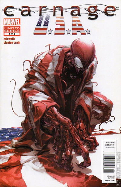 THIS LAND IS MY LAND WELCOME TO CARNAGE U.S.A. - THE ULTIMATE RED STATE! Carnage's maniacal reign of terror continues, courtesy of the critically acclaimed creative team of Zeb Wells and Clayton Crain! Spider-Man and the Avengers must go on a brutal hunt to capture Cletus Kasaday before a small town in the American heartland falls under his mass-murdering spell! Buckle in and prepare for a violence packed adventure! Carnage U.S.A. wants YOU this December!