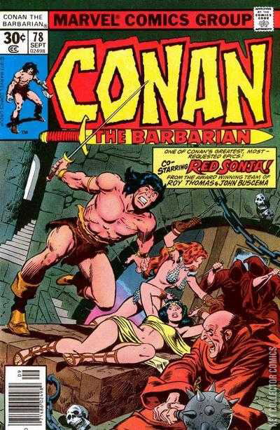 Shadizar, Zamora:Red Sonja witnesses a public execution in the city square - the sorceror,Costranno,is sentenced to death. Before his dismemberment he shouts a curse at Berthilda,the woman responsible for severing his ring-finger,the source of his magic...SPOILER WARNING: Click here to reveal hidden content.Later, elsewhere in the city,Conan stumbles upon a scene,as fleeing robed priests are attacked by a gang of thieves. A fight ensues,and joined by Red Sonja,the brigands are dispatched. In the alley the priests fled from,is the assembled corpse of Costranno, surrounded by magical runes. Conan finds the wizards ring-finger,flinging it away in superstitious dread. Sonja relates the events at the execution to him,and they retire to a nearby tavern...Whilst drinking,Red Sonya has a confrontation with a harlot and knocks her down...Costranno, back from death aided by necromantic powers of his ring, is also frquenting the bar and enquiring the wherabouts of the woman Berthilda to enact his revenge...As the undead wizard leaves,Conan notices the jeweled ring - from the very same severed hand he left in the alley! Before they can leave,a squad of city-gaurds arrive to arrest Sonya and Conan having been alerted by the assaulted harlot.Once again,a fight ensues but Conan and Sonya manage to slip out and escape in the streets...Conan`s curiosity is aroused and they seek out the house of Berthilda. Entering,they find Costranno and an acolyte preparing to sacrifice Berthilda...Conan attacks the undead wizard, but his blows prove useless against Costranno`s animated body.... Sonya dispatches the acolyte but is grabbed by some monstrosity that reaches out from a smoking pit in the room`s centre...Severing Costranno`s hand at the wrist, the wizard collapses, dead again when detached from... The issue features the story `Curse Of The Undead-Man` - an adaptation of R.E. Howard`s `Mistress Of Death`. Originally printed in Savage Sword of Conan #1.