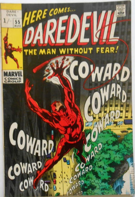 CRY COWARD! In semi-hiding, Daredevil recovers from his battle against Mr. Fear, Daredevil stops an attempted mugging. During the fight he has a sudden bout of debilitating fear, and the muggers gain the upper hand until the police break things up. DD is balked by all the spectators who label him a coward, all influenced by the negative press labeling Him as a chicken. Wondering how he could defeat Mr. Fear, DD visits the District Attorney's office and asks Foggy Nelson for a favor and has the warden read him the file on Zoltan Drago (The identity of the original Mr. Fear). When Mr. Fear attempts to rob an armored car, DD is there to stop him. During the fight, Daredevil informs Mr. Fear that he knows that he isn't Zoltan Drago - the original - because the original Mr. Fear had a fear of heights and would never use a flying device, like the one they are fighting on. During the course of the fight, DD unmasks Mr. Fear, revealing him to be Starr Saxon. His plot foiled, Starr jumps off the floating platform to his apparent death. DD then reveals that Starr placed fear capsules in the billy club while he was in possession of it, and that they were the cause of his bouts of cowardice.