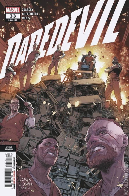 LOCKDOWN, PART 3 “LOCKDOWN” CONTINUES! Elektra faces her greatest challenge as DAREDEVIL yet, as a serial killer is on the loose in Manhattan and killing innocent people. But even the deadliest assassin in the Marvel Universe is at somewhat of a loss, because this killer can be in more than one place at one time. A team? A mutant? Or something else entirely? Whoever or whatever they are, they have a thirst for blood, and Elektra will put herself directly in their sights! PLUS: Matt Murdock faces challenges of his own in prison after being exposed to a dangerous and experimental compound called RE-CID that makes those subjected to it more aggressive and violent. Whatever happens, one thing is certain—Daredevil isn’t getting time off for good behavior… LEGACY #645