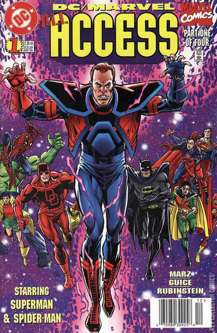 Marvel Comics and DC Comics recapture the magic of the hit crossover miniseries DC Versus Marvel with this astonishing sequel miniseries. Young Axel Asher—also known as Access—is the living key to the door between the DC and Marvel Universes! He believed the crossover crisis was over. But when mutants and metahumans mysteriously begin appearing in the wrong reality, Access must act quickly before prolonged contact recreates the bizarre fusion reality known as the Amalgam Universe! Superman, Spider-Man, Batman, Daredevil, the JLA, the X-Men, and others are all on hand as a mysterious power with sinister motives brings together the best of both worlds!