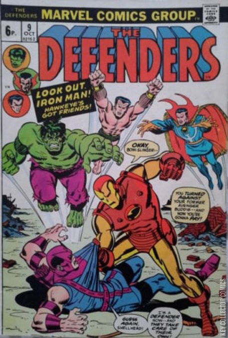 "The Avengers Vs. The Defenders Chapter 4: Divide... and Conquer" - Continuing from the events in Avengers #116... The Silver Surfer has returned to Dr. Strange's Sanctum Sanctorum with the first fragment of the Evil Eye. He informs Dr. Strange that he met opposition from the Avengers. Using the Orb of Agamotto to check out what is going on, Dr. Strange gets an image that Loki is involved, and unaware that the Swordsman has reformed and joined the Avengers ranks, believes the Avengers may be under some evil influence. "Chapter 5: The Invincible Iron Man Vs. Hawkeye the Archer!" - In Monterrey, Mexico, Valkyrie drops Hawkeye off to search for the fragment of the Evil Eye that is hidden there. Before Val can leave they are contacted by Dr. Strange who informs them that they may find opposition from members of the Avengers. As Val leaves for Bolivia, Hawkeye notices the arrival of Iron Man. And... "Chapter 6: Dr. Strange, Master of the Mystic Arts Vs. The Black Panther and Mantis!" - Arriving in Indiana, Dr. Strange begins looking for the next fragment of the Evil Eye, while elsewhere Black Panther and Mantis are combing the area looking for it as well. During their search, the two Avengers end up at a bus station where the enhanced senses of the Mantis detect that Dr. Strange is near and disguised.
