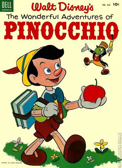 Walt Disney's The Wonderful Adventures of "Pinocchio" - Written by Carlo Collodi (novel) and Chase Craig (adaptation). Art by Walt Kelly. Cover by Norm McGary? Partial reprint of #92. Adaptation of the 1940 Walt Disney film PINOCCHIO. Starring Pinocchio, Jiminy Cricket, Gepetto, The Blue Fairy, John Worthington Foulfellow, Gideon, Stromboli and Figaro! 36 pages, full color. Cover price $0.10