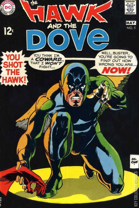 Title: "Death Has Taken My Hand" Sam Hodgins, a man who once saved Irwin Hall's life, is accused of robbery. Hawk and Dove discover that the two witnesses against him are members of a hot car ring. When Hawk is critically injured, Dove horrifies himself when he abandons his pacifism and beats the supposed killer unmercifully. Dove then sees that the killer is Hodgins. After Hank Hall has made a full recovery, Hawk and Dove are back in action. They pursue an unnamed crook into a building where they encounter the Teen Titans. This story continues in Teen Titans #21.