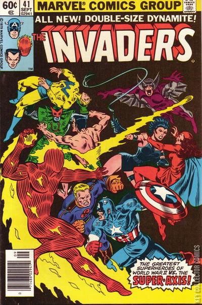 The Invaders vs. the Super-Axis! It’s Cap, the Human Torch, Sub-Mariner, Bucky, Miss America, and the Whizzer against Baron Blood, Lady Lotus, U-Man, Master Man, and Warrior Woman!
