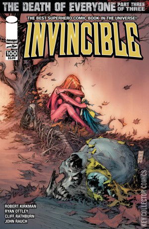 THE DEATH OF EVERYONE, PART THREE 10TH ANNIVERSARY LANDMARK 100TH ISSUE SPECTACULAR! THE DEATH OF EVERYONE: CONCLUSION! It's all been building to this. Mark Grayson's entire life as a superhero, all he's learned, all he's endured, it's all been leading to this one moment. Will he become the hero he was meant to or will he choose... a DIFFERENT path? The aftermath of this EXTRA-SIZED issue will shock you. Rare miscut errors have been found