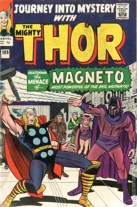 "When Magneto Strikes!" - Magneto and his evil mutants come to New York searching for their nemises The X-Men. But Magneto's toying with the local magnetic field attracts the attention of the local thunder god!* Tales of Asgard: Banished from Asgard! - When Odin banishes Thor from Asgard, Arkin uses that knowledge to curry favor with the Queen of the Mountain Giants. *note: although the effects of the X-Men's powers appear in this issue, the X-Men themselves are never actually shown in the comic.