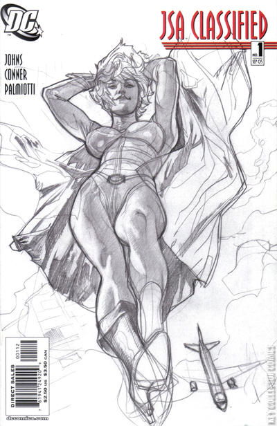 Spinning from the events of July's JSA #75, a highly anticipated new JSA series debuts with a story written by Geoff Johns (JSA, TEEN TITANS) with art by Amanda Conner & Jimmy Palmiotti (TWO-STEP) that spotlights everyone's favorite female juggernaut: Power Girl! Readers have long wondered about Power Girl's origins. Is she a wizard's lost granddaughter? A refugee from the future? An orphan of Krypton? Now learn the unexpected answers in an adventure that acts as a prelude to this fall's massive crossover event that will affect the JSA for years to come! This issue will ship with two exciting covers by Amanda Conner and Jimmy Palmiotti and Adam Hughes, respectively.