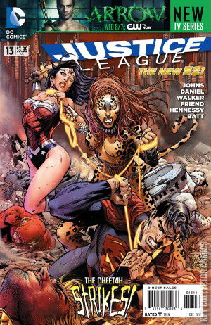 THE SECRET OF THE CHEETAH,  CHAPTER ONE Five days after the Justice League's encounter with David Graves, Wonder Woman confronts Cheetah in Central Park. Diana pleads with Cheetah, as she wants to help free her friend from the villainous curse. Barbara rebuffs Wonder Woman's offer, believing that humans are really animals, and cattle to slaughter. While the two fight, Cheetah gains the upper-hand, injuring Wonder Woman, and leaving her on the ground.   The League takes Diana back to the Watchtower to recover, while Batman and Aquaman go visit Steve Trevor to find information about Cheetah. Trevor tells them that Barbara Minerva was Diana's first friend in Man's World, and she helped Diana and him solve mythological cases around the world. Barbara oversaw the Black Room at A.R.G.U.S, and one day received a Ritual Dagger from a lost tribe in the Amazon Rainforest. Barbara accidentally cut herself with it, and was possessed by the Goddess of the Hunt, and became the Cheetah.   Diana blames herself for what happened and wants to save Barbara alone, but the League insist on helping her. Cyborg tracks the tribe to the The Congo, where the team hears chanting. Suddenly, the Cheetah attacks the group, biting Superman, transforming him into a cheetah-man monster. ON THE OUTS Amanda Waller replaces Steve Trevor as the liaison to the Justice League, but she tells him she has more missions for him. Later, Trevor and Green Arrow examine a mysterious communicator that Multiplex had.