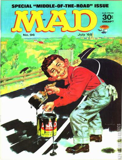 Home / EC / Mad / Mad #96 EC Released July 1965 Mad #96 Add to Collection Want It Synopsis No synopsis available. Issue 97 of 547 Add to Collection Buy it on eBay Buy on eBay Low $5 Mid $15 High $50 Synopsis No synopsis available. Details Series Mad Cover Date July 1965 Pages 52 UPC N/A Cover Price $0.30 Final Order Cutoff N/A Creators No creators listed. Price Guide Log in or subscribe to access detailed graded price information and market insights. Log In Subscribe