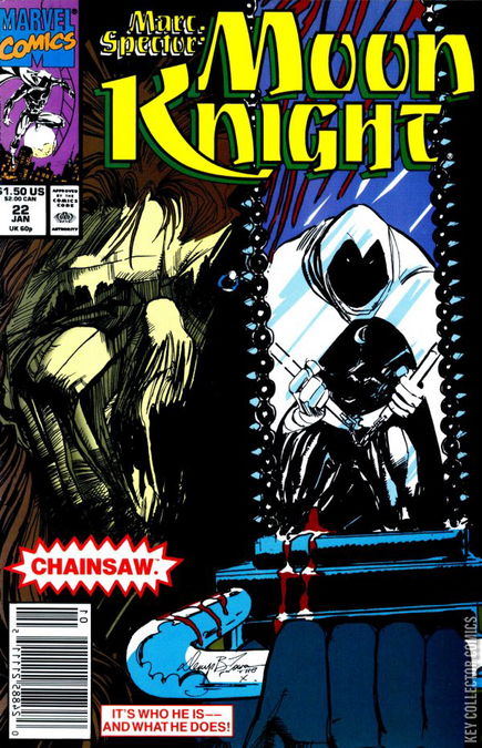 Moon Knight returns to the Empire Mall where he encountered the Secret Empire. It's now patrolled by SHIELD agents, but he manages to sneak inside and access the Empire's computers. He needed to be sure that Jeff was indeed dead. He finds no mention of him, but does see another name that he recognises--Bo Ollsen. Meanwhile, a man has been kidnapped and thrown into a maze where he is chased down and killed by a masked man on a motorcycle, brandishing a chainsaw. Back at home, Marc is informed of his failing finances by his accountant. The remaining Secret Empire heads discuss Jeff before getting into an argument about leadership after Number One's capture. We see Jeff briefly, badly injured still, but recovering, before he is taken away. Meanwhile, Frenchie befriends a cultural extremist and gets invited to his group's next meeting. Marc and Marlene keep watch and Marc spots Bo and Chainsaw. They're about to leave when Marlene is captured and thrown into the maze. Moon Knight jumps through the skylight to save her...