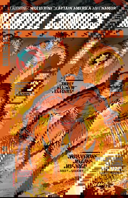 WOLVERINE: THE VIGIL, PART 1 / WAR'S END / FIRST RIDE THE CLASSIC MARVEL SERIES RETURNS FOR MARVEL'S 80th ANNIVERSARY! Three titanic tales celebrating the first decade of Marvel stories! First—an all-new tale of the man they call the Wolverine begins in the 1940s! Then comes Captain America, the first Avenger of World War II still fighting for freedom today! And finally, the untold tale of Namor and the atom bomb!
