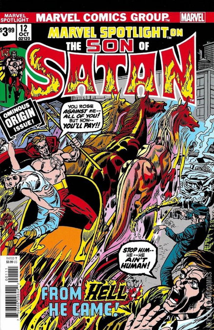 "The Son of Satan!" - Daimon Hellstrom is the Son of Satan and, though his personal motivations are dubious, he must face his father and the hordes of hell to save the Ghost Rider.