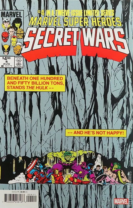 Beneath one hundred and fifty billion tons stands the Hulk - and he's not happy! As Marvel's facsimile treatment of the finest super-hero event of all continues, the villains of Battleworld destroy the heroes' stronghold - and drop a mountain on them! Only a few heroes escape this fate: Thor is left to battle alone, while the Wasp is held captive by Magneto - and the X-Men propose a truce with their longtime foe! Meanwhile, Doctor Doom takes revenge on one of his evil allies! With most of the forces of good buried alive under an utterly unimaginable weight, can even the might of the Hulk keep them from death? It's perhaps the Green Goliath's finest hour in one of the all-time great Marvel comic books, boldly re-presented in its original form, ads and all! Reprinting MARVEL SUPER HEROES SECRET WARS #4.