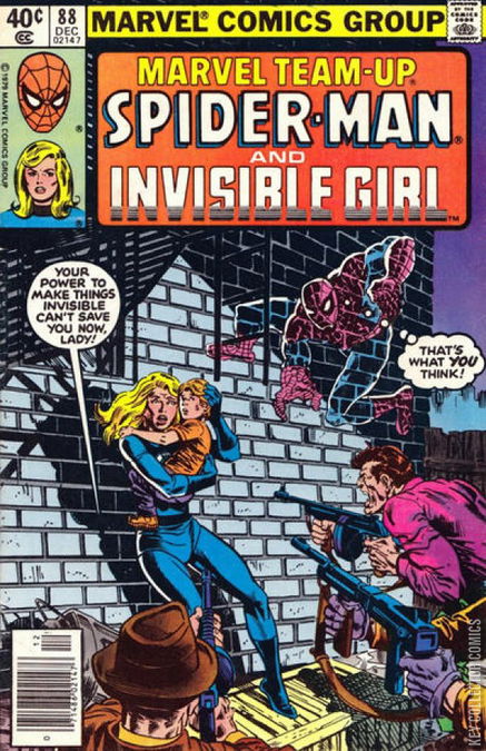 A CHILD IS WAITING Peter Parker is bored to death on a photography assignment at a Central Park Society luncheon. Even the presence of socialites Sue Richards and Janet and Henry Pym provides no relief. It is the nicest day in weeks, Peter thinks glumly to himself, and he has to spend it indoors shooting pictures for the Daily Globe's gossip page. Not only that, the food is terrible. But, it's a living. When Sue is called to the telephone, Peter follows her, snapping pictures. But as she talks to Alicia Masters, she suddenly becomes enraged, slams the telephone down, and swiftly strides from the building. It is obvious that something is wrong, so Peter trails her unobtrusively, and he soon gets close enough to slap a spider-tracer on her purse. After she enters a taxi and speeds away, Peter changes into his Spider-Man costume and web-swings in pursuit. Sue soon arrives at Alicia's apartment, and Spider-Man listens to their conversation at the skylight. Alicia is in tears as she tells Sue about the gang of criminals that kidnapped Franklin, whom Sue left in Alicia's care. Being blind, Alicia could not prevent the thugs from chloroforming the boy. They forced her to telephone Sue, and then they quickly departed. The telephone interrupts Alicia's narrative, and Sue turns on Alicia's recorder. The voice on the phone tells Sue that if she wants her son back alive, she must do exactly as she is told. The voice explains that there is a Maggia "bank" in Harlem that she is to rob for them. Spider-Man hears everything and decides to help her, though his plan must be nearly flawless with her son's life at stake. Half an hour later, a Ferrari borrowed from Johnny Storm's car collection pulls up in front of a decaying brownstone building in Harlem. Sue Richards steps out, drawing gazes from the local residents, and enters the building. On the third floor, a petty criminal named Spencer Jarret is standing guard. Suddenly, he sees something most peculiar a dress walking upstairs by itself. He whips out a pistol and opens fire, and Sue realizes that in her haste she forgot to change her gown, which is not treated with unstable molecules and did not turn invisible with her. In a fraction of a second, she whips it off into his face; so that it appears to be attacking him. In the room that Janet was guarding, a group of criminals counting large sums of money are startled by the sound of gunfire. Then Jarret smashes through the door, propelled by Sue's invisible battering ram-shaped force field. Sue knocks out the gunmen one by one, but unfortunately, one of them escapes to inform his boss, Morgan. Sue quickly puts on the Fantastic Four costume that she carries in a secret compartment in her purse. Then she quickly gathers the money, millions of dollars of it, into a briefcase and returns to her Ferrari. Her next stop is Yankee Stadium, where there is a double-header today. Her instructions are to be there just before the second game begins. As she adjusts her rear-view mirror, she sees Spider-Man in the back seat. She angrily tells him to leave, but he explains that he knows about the kidnappers and says that as long as they have her son, the Fantastic Four are nearly helpless. He will help her get him back safe, he says, but they better get moving, because Morgan will certainly send his men after her when he finds out what she has done. But even as he speaks, a Cadillac pulls up behind the Ferrari and Morgan's crack "enforcer" squad emerges, armed with machine guns. When they approach the Ferrari to check it out, Spider-Man slams them with hard web-balls and tells Sue to step on it. The Ferrari screams away from the curb with the Cadillac in hot pursuit. But Sue cannot shake off the driver, so she tells Spider-Man to take the wheel. Unfortunately, Spider-Man cannot drive very well, but he does manage to keep from crashing. Sue, meanwhile, shapes her force field into a ramp in front of the Cadillac, and suddenly the gangsters' car flips into the air and smashes into an abandoned tenement. Spider-Man slams on the brakes, and when Sue asks him why he is shaking, he tells her. Sue takes the wheel. A half-hour later they arrive at Yankee Stadium, where the Yankees are playing the Boston Red Sox. As instructed, Sue walks directly to the pitcher's mound, much to the puzzlement of the fans. Beside her is Spider-Man, but she has made him invisible. After a few minutes, a man in an umpire's uniform takes her briefcase. She asks where Franklin is, and the man replies that he is safe. But he has no intention of giving him back yet, and he says that if she leaves the mound or turns invisible before he leaves the field, the boy will be killed. As the man departs, Spider-Man follows him, and Sue strains mightily to keep him invisible all the way across the baseball field. Fortunately, he makes it, and he continues to follow the man through the stadium. He notices that several passersby have identical cases, as if the gangsters are playing a "shell game." The man soon discards his uniform, and Spider-Man also does a quick costume change to follow him inconspicuously as Peter Parker. The man takes a subway to Manhattan, and Peter gets in the car with him. Peter cannot put a spider-tracer on him, because the gangsters said that they have detectors, so he bugged himself instead. This way, Sue can track him. The man disembarks at 125th Street and heads down a maintenance walkway. Peter changes back into his Spider-Man costume and, clinging to the ceiling, follows. He is so intent on his quarry that he is almost run into by a train, but after it passes, he finds he has lost his man. Just as he is cursing himself for his inattention, Sue turns visible behind him and says she saw the man slip inside a hidden door on the other side of the tracks. And so, just as the Hole in The Wall Gang are busy congratulating themselves on having earned a cool $3 million, Spider-Man smashes through the wall and starts pummeling them. Franklin 