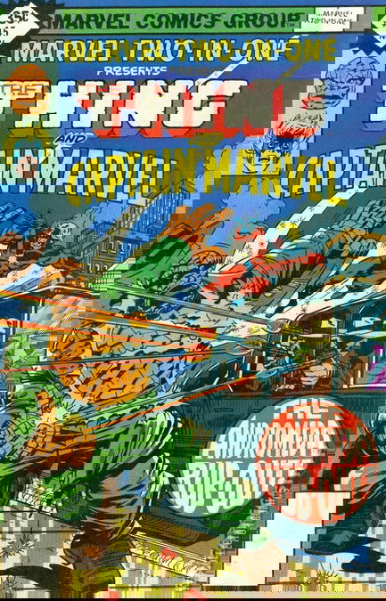 It is a dark and stormy night, and Ben is at a newsstand picking up a paper. As he walks away, a mysterious figure is musing to itself about how its taken a lot of time to track him down after he busted up his 'racket', and finishes by saying out loud "-- and for that, Mr. Thing, you're gonna die!"Elsewhere, Captain Marvel is doing some research when his cosmic senses notice an odd discharge. He heads into orbit after it, and is blasted from nowhere just as he realises "It's after Grimm!"Ben, meanwhile, is in his tuxedo and out to dinner with Alicia. He gets a threatening phone call from someone with a gangster accent, and when he and Alicia leave the restaurant, a 20s sedan makes a drive-by shooting attempt at him. Ben gives chase in a convenient taxi, but the sedan eventually flies off, with Ben clinging to the roof. After it vanishes with a 'pop' over the harbor, a confused Ben is plucked from the water by Captain Marvel.Alicia is sent home, and Ben and Captain Marvel settle in together to 'make a stand'. After a bored Ben heads out for a walk, a 'fake Ben' shows up and blasts Marvel, while the real Ben is facing the main bad guy all on his own...