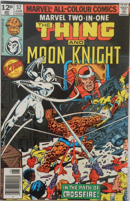 "A LITTLE KNIGHT MUSIC" Moon Knight teams-up with Mr. Fantastic and the Thing! While accepting an award at a ceremony on his behalf, Reed Richards witnesses an attempted assassination. Ben Grimm quickly goes into “Thing” mode, but not before Moon Knight arrives on the scene with answers and the location of the mercenary.